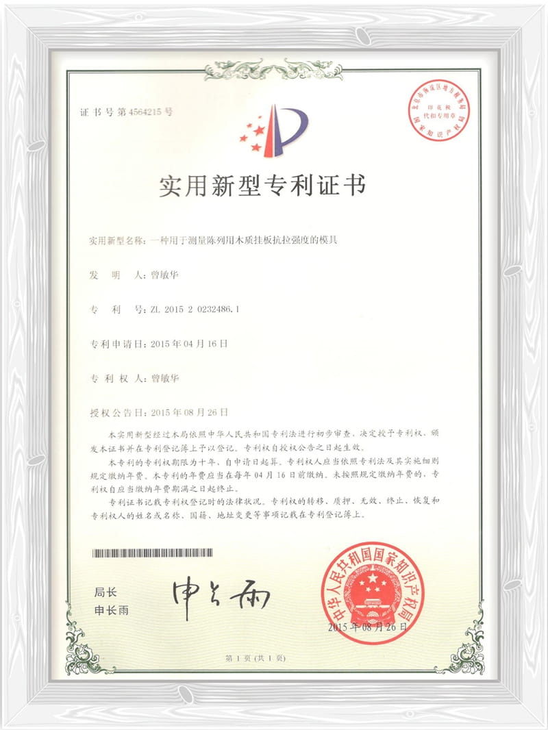 一种用于测量陈列用木质挂板抗拉强度的模具专利证书