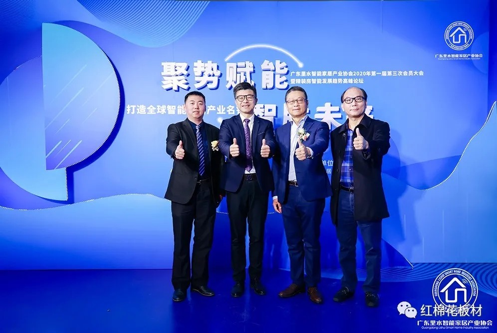 2020年12月23日,里水智能家居产业协会举行2020年第一届第三次会员大会暨精装房智能发展趋势高峰论坛,监事长单位广东亿兆电竞首页|中国有限公司装饰材料有限公司董事长曾敏华先生、副董事长吴惠仪女士受邀出席会议及高峰论坛,并荣获“2020年度特殊贡献奖”。