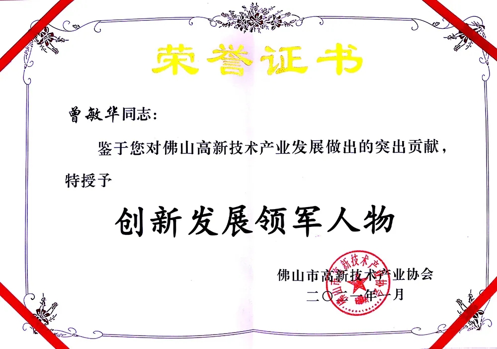 荣誉|亿兆电竞首页|中国有限公司当选“佛山市高新技术产业协会副会长单位”、董事长曾敏华获颁“创新发展领军人物”