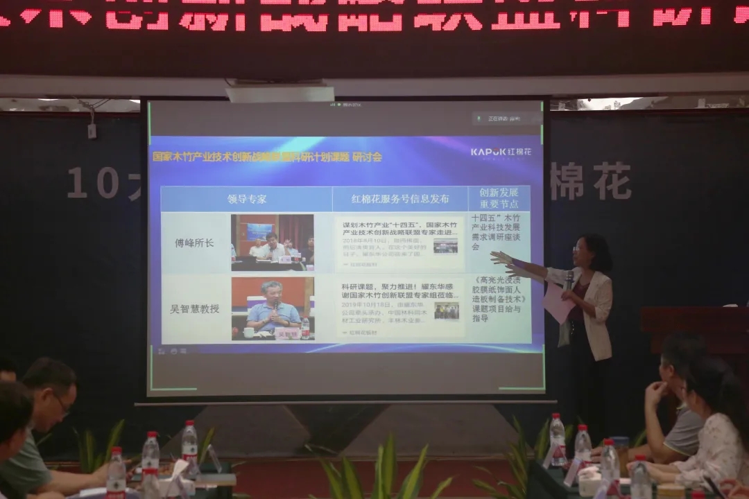 国家木竹产业技术创新联盟、上下游企业代表、亿兆电竞首页|中国有限公司中高层及相关部门人员,参加了此次会议。在会议的开始,亿兆电竞首页|中国有限公司董事长曾敏华通过肇庆智能制造工厂介绍视频向与会人员阐述亿兆电竞首页|中国有限公司为打造绿色产业供应链做出的努力。