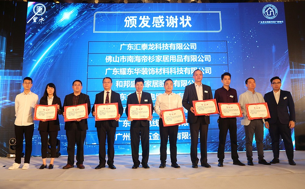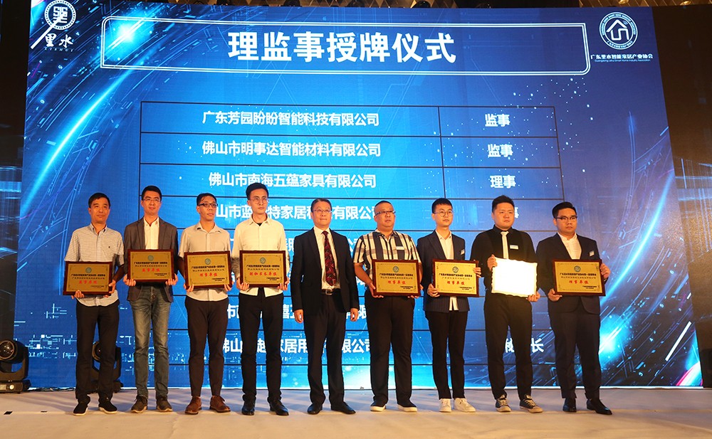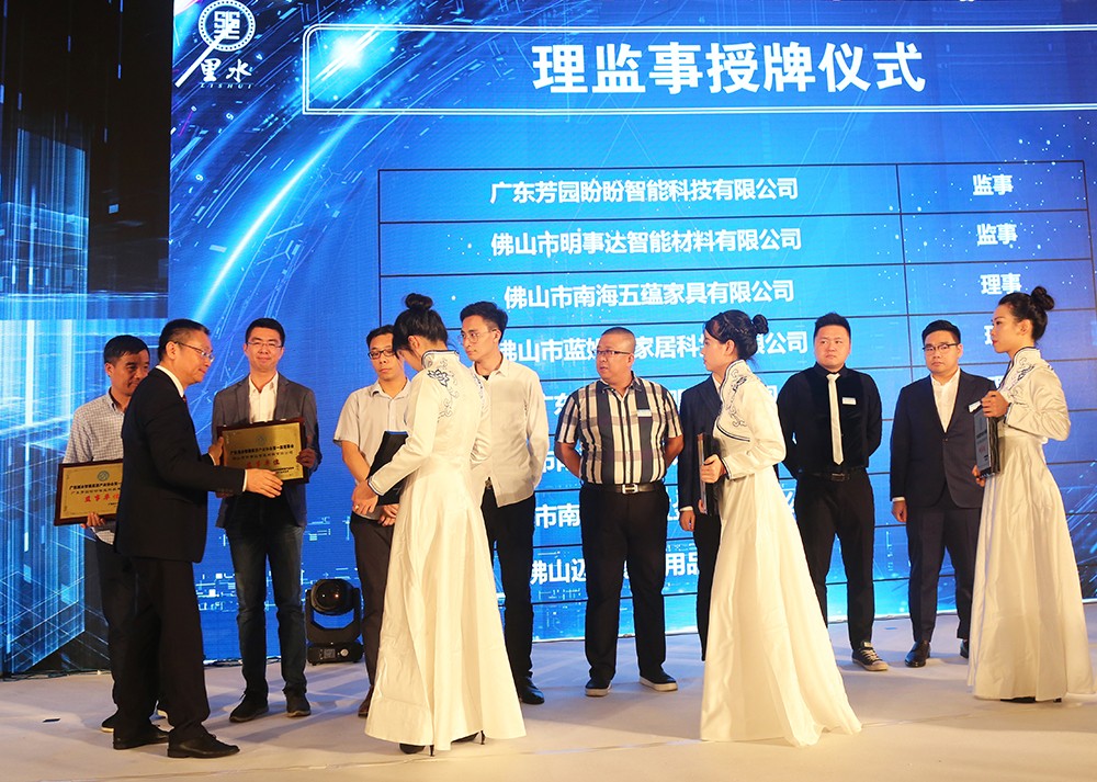 亿兆电竞首页|中国有限公司公司董事长曾敏华作为颁奖嘉宾,为广东里水智能家居产业协会第一届理事长副秘书长单位、理事单位授牌。