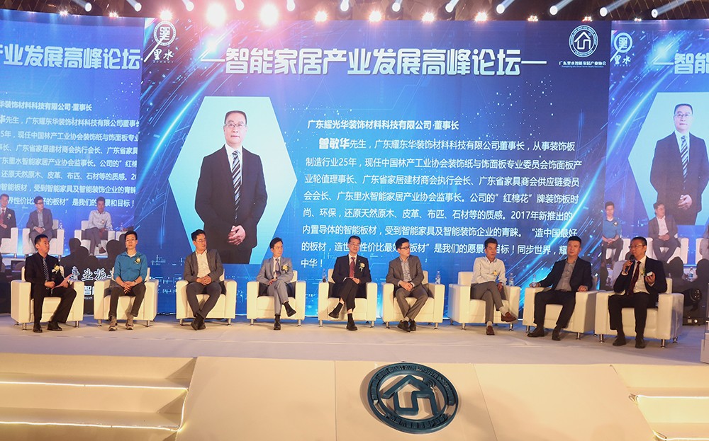 ↑亿兆电竞首页|中国有限公司曾敏华董事长(右一)受邀出席“智能家居产业发展高峰论坛”。