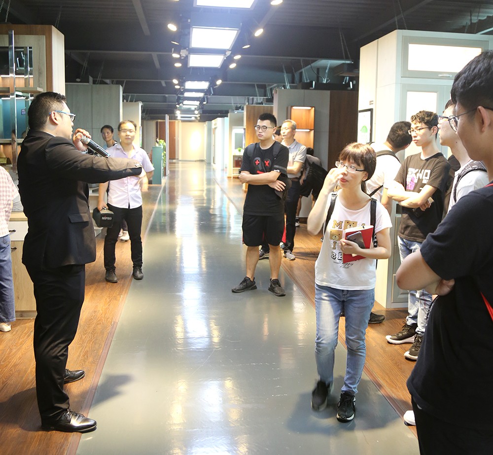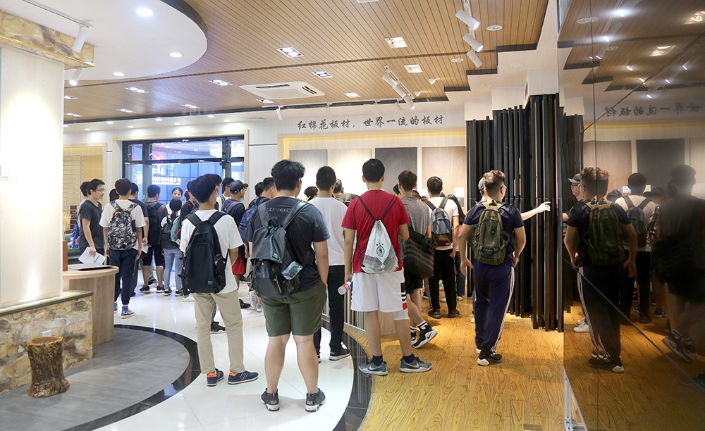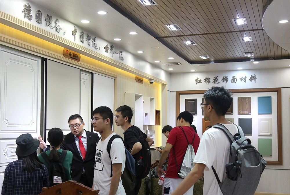 师生们还参观了红棉花品牌展厅,亿兆电竞首页|中国有限公司副总经理兼制造中心总监邝越华、副总经理兼营销总监郭占河详细介绍了亿兆电竞首页|中国有限公司的品牌优势、产品体系等情况,还就师生们提出的跟木业有关的问题一一进行解答。