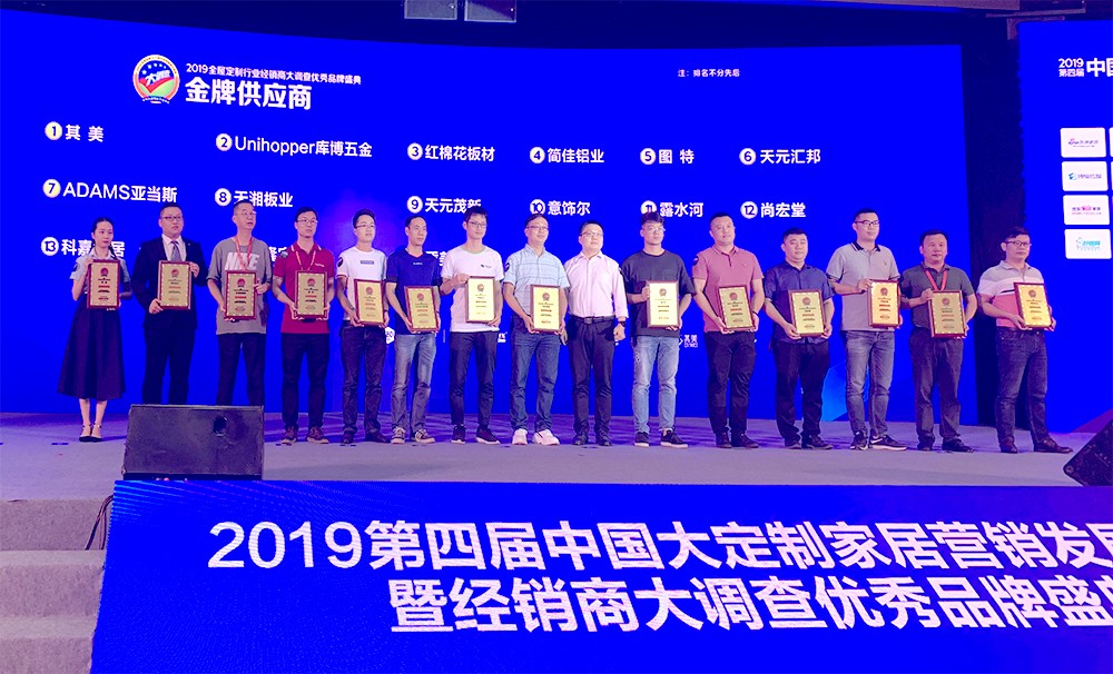 荣誉|红棉花板材荣获2019年全屋定制行业“金牌供应商”