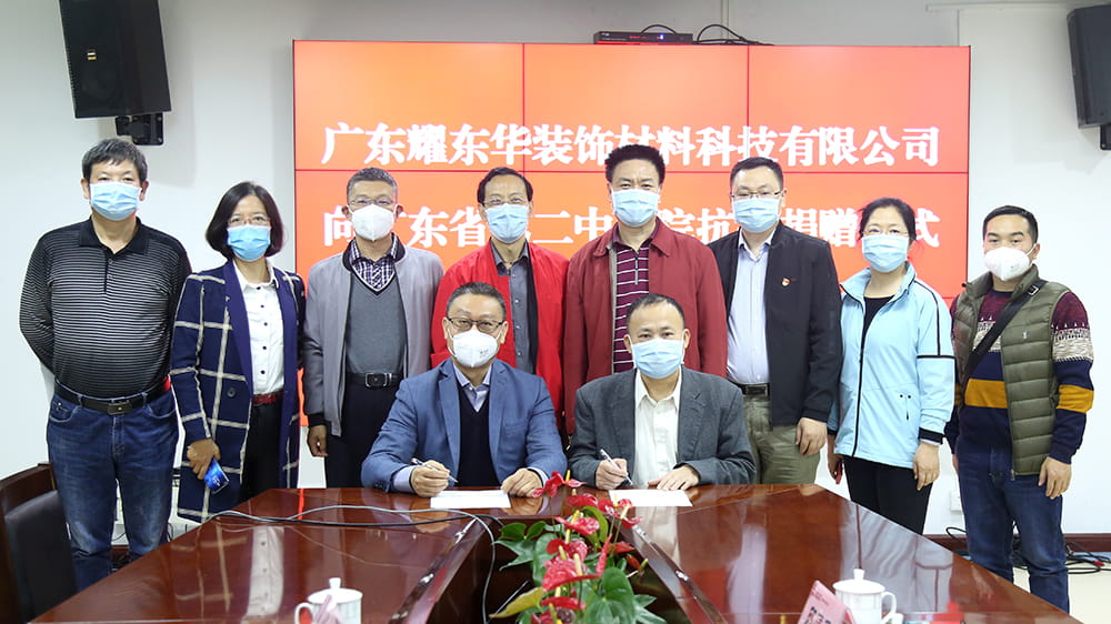 2020年3月6日下午,广东亿兆电竞首页|中国有限公司装饰材料科技有限公司向广东省第二中医院捐赠一批“红棉花”牌抗菌防霉饰面刨花板定制的家具,用于改善医院呼吸科医护人员及病人的环境,共同抗击新肺疫情,捐赠仪式在广东省第二中医院举行。