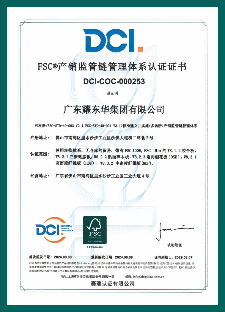 FSC产销监管链管理体系认证证书